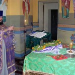 13 августа, накануне праздника Происхождения Честных древ Животворящего Креста Господня, настоятель храма Рождества Пресвятой Богородицы г. Балканабада иерей Альвиан совершил всенощное бдение. После великого славословия настоятель совершил чин выноса Животворящего Креста Господня на середину храма для поклонения.
